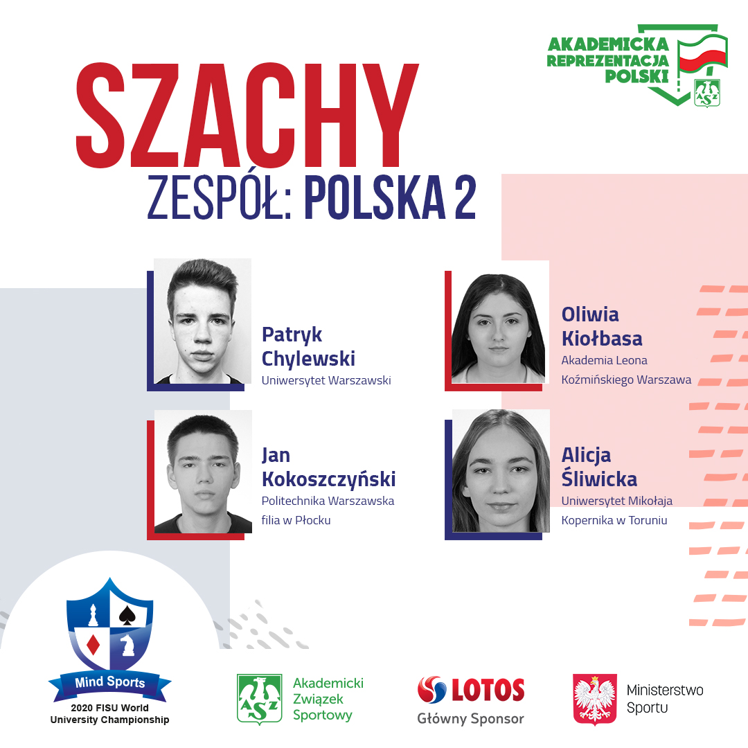 Polacy wystawili cztery drużyny w szachach i pięć w brydżu. – Nie będzie ceremonii medalowej, nie będzie ceremonii otwarcia, nie zabrzmi, jak zawsze, Gaudeamus. Po zakończeniu imprezy każdy z zawodników otrzyma certyfikat uczestnictwa – dodaje Katarzyna Domańska.