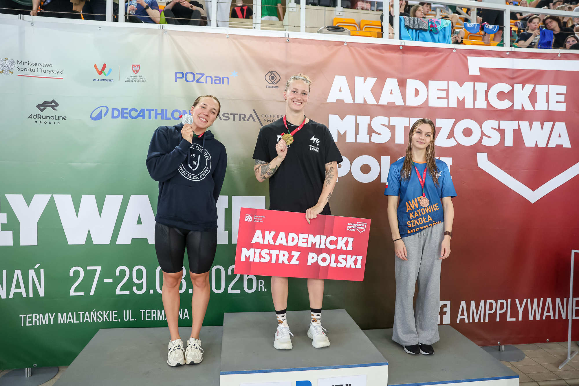 – Obok kadrowiczów, uczestników igrzysk, MŚ czy uniwersjad pojawili się u nas sportowcy rekreacyjni, różnice czasami były bardzo duże, natomiast AMP-y jest wspaniałą formą kontaktu między sportem zawodowym a rekreacyjnym. To bardzo cenna impreza, którą warto kontynuować – podkreślał Tomasz Szponder, prezes OŚ AZS Poznań, organizatora AMP w pływaniu. Partnerem wydarzenia byli Samorząd Województwa Wielkopolskiego i Miasto Poznań. Sponsorami zawodów byli Dom Wydawniczy Rebis, Decathlon, Termy Maltańskie, Astra, Neuroport, Drukarnia Abedik, AdRunaline, TriSwim, 21 ADD, Tattoo Coffee, Grupa Lagris.